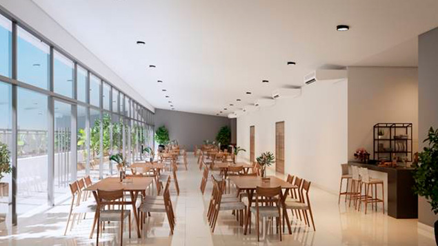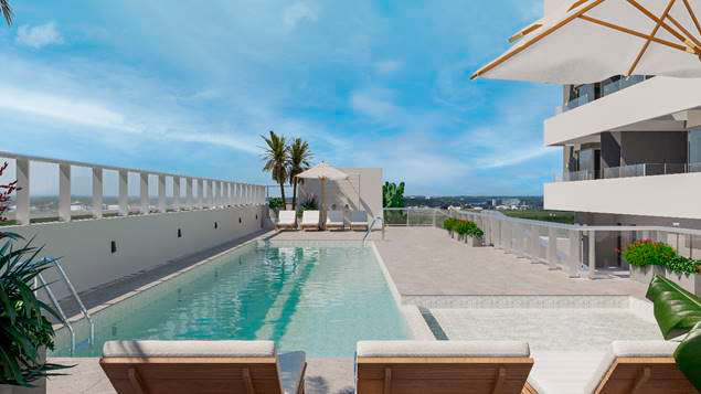 Amenities Terraza: Terraza semi cubierta, salones multiuso, sanitarios para los salones, deck piscina, sanitarios área de piscina.
